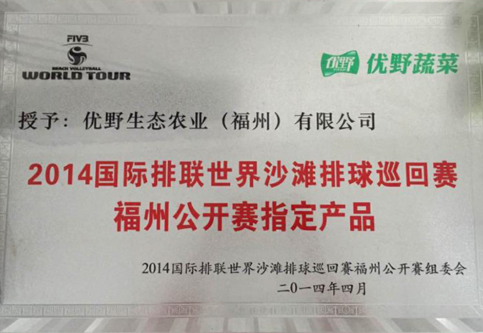 2022-12-09福州優(yōu)野生態(tài)農(nóng)業(yè)有限公司為2014-2015年度世界沙灘排球巡回賽福州公開(kāi)賽指定蔬菜供應(yīng)商。